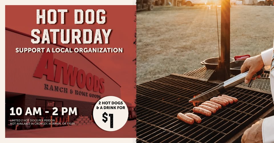 Hot Dog Saturdays are back! Stop by your local Atwoods and pick up 2 Hot Dogs and a drink for $1 from 10am to 2pm on the following dates: