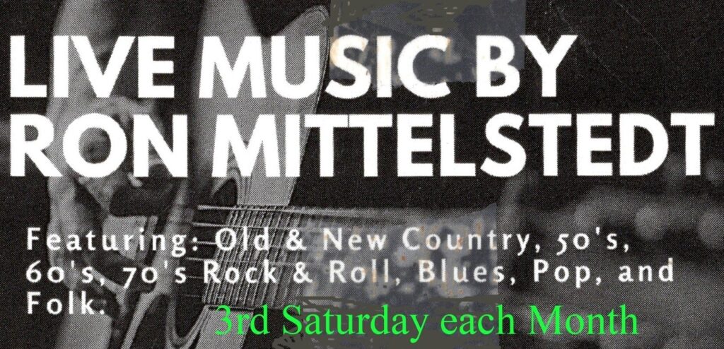 The third Saturday of every month, The local VFW Post 2399 hosts LiVe Music with Ron Mittelstedt featuring old & new country, 50’s, 60’s & 70’s Rock-n-Roll, Blues, Pop & Folk music.